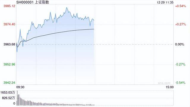 盘面上热点快速轮动,全市场超3400只个股下跌。从板块来看,商业航天概念延续强势,10余只成分股 涨停,神剑股份8连板,金风科技、雷科防务涨停。机器人概念反复活跃,锋龙股份4连板,五洲新春、 模塑科技等多股涨停。贵金属板块持续走强,白银有色、湖南白银双双涨停。碳纤维概念表现活跃,吉 林化纤涨停。下跌方面,大消费板块下挫,零售、乳业概念跌幅居前,百大集团跌停,皇氏集团大跌。 市场概况 73.83%用户看涨 > 凤凰网财经讯 12月29日,早盘三大指数涨跌不一,沪指震荡上扬,创业板指翻红后再度回落。截至午 间收盘,沪指涨0.31%,深成指涨0.03%,创业板指跌0.32%。沪深两市半日成交额1.4万亿,较上个交易 日缩量546亿。 | | | | | | 户深京重要指数 | | | | | --- | --- | --- | --- | --- | --- | --- | --- | --- | | 名称 | *● | 最新 | 涨幅% | | 涨跌 涨跌家数 涨速% | | 11 1 1 1 1 | 现手 金额 | | 上证指数 | | 3975.92 | 0.31 | 12.24 | 839/1424 | - ...