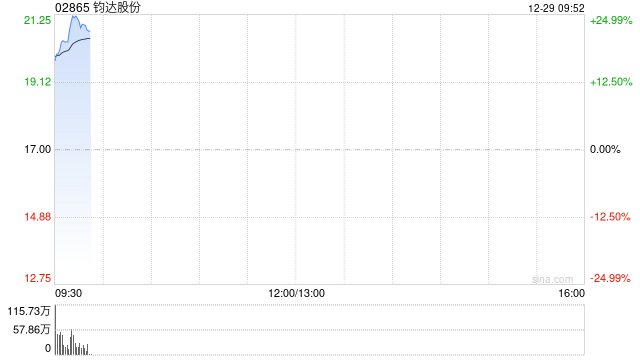 钧达股份盘中大涨超25% 公司与尚翼光电签署战略合作协议