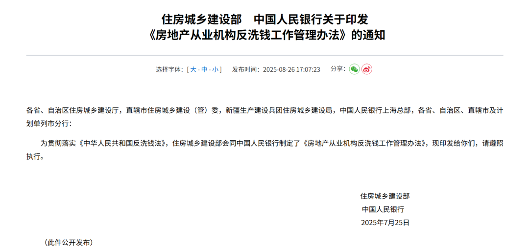 两部门印发《房地产从业机构反洗钱工作管理办法》