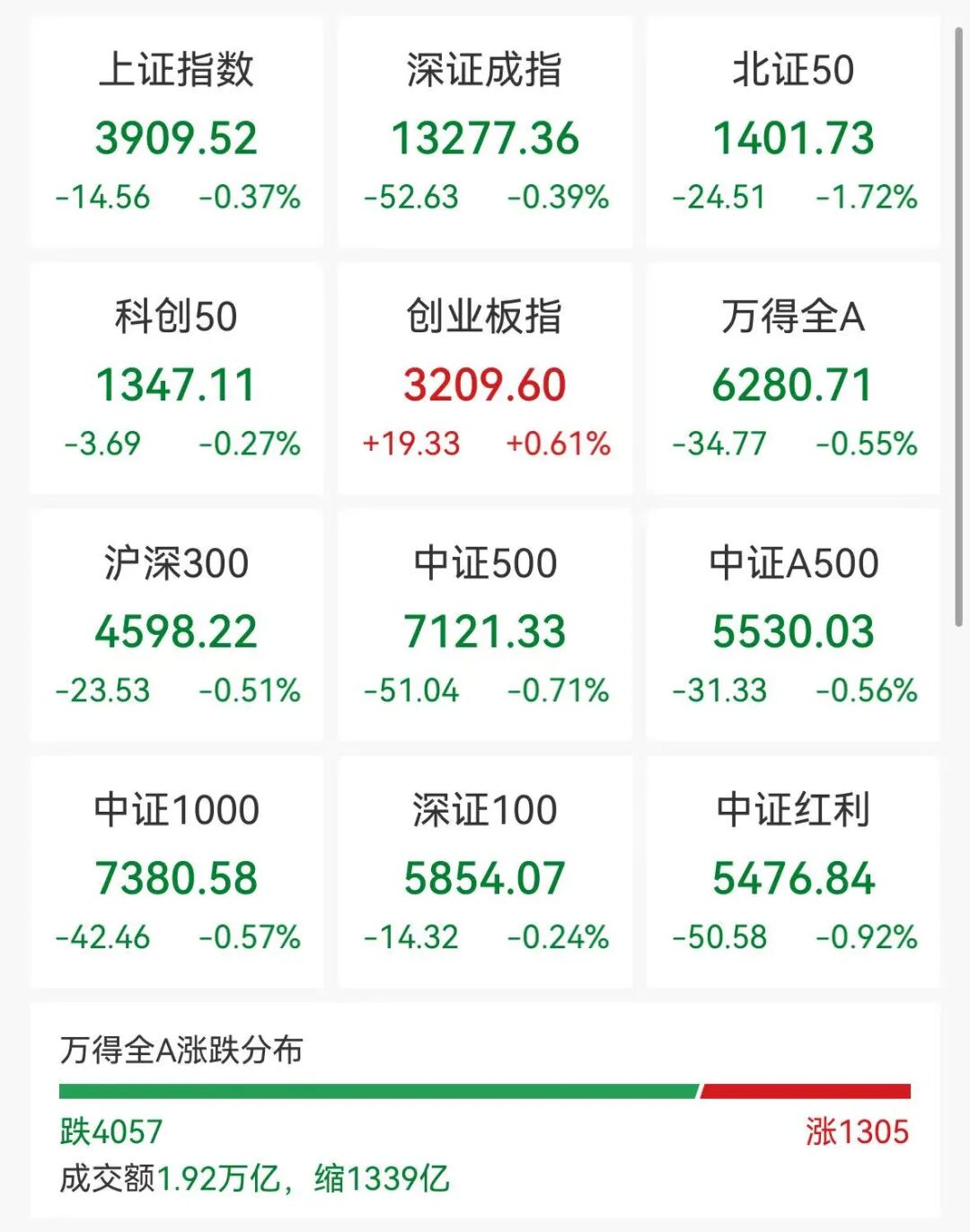 市场整体表现 - 12月9日,A股主要指数涨跌互现,沪指跌0.37%报3909.52点,深成指跌0.39%报13277.36点,创业板指涨0.61%报3209.60点 [1] - 沪深两市成交额1.92万亿元,较上一个交易日缩量1339亿元 [1] - 全市场超4000只个股下跌,市场呈现普跌格局 [1] - 北证50指数下跌1.72%,科创50指数下跌0.27%,万得全A指数下跌0.55% [2] - 主要宽基指数普遍收跌,沪深300指数跌0.51%,中证500指数跌0.71%,中证1000指数跌0.57% [2] 行业与板块表现 - 算力硬件概念全线走强,德科立20cm涨停,福晶科技、天孚通信再创历史新高,胜宏科技涨超10% [3] - 福建板块反复活跃,安记食品6连板,舒华体育4连板,东百集团、厦门港务双双3连板 [3] - 下跌方面,海南本地股集体大跌,新大洲A跌停 [7] - 有色金属、黄金珠宝板块全线回调,铝业、黄金领跌,多股跌超5% [7] - 根据板块跌幅榜,黄金珠宝板块跌2.03%,铝产业板块跌2.22%,铜产业板块跌2.43% [8] - 房地产精选、大基建央企、SPD等板块跌幅居前,分别下跌2.45%、2.69%、2.75% [8] - 商品市场方面,金价银价短线下挫,现货黄金一度跌破4180美元关口 [8] 重点公司动态 - 摩尔线程尾盘快速拉升,截至收盘涨5.73%,报628.31元/股,市值报2953亿元 [3] - 永辉超市、茂业商业、中央商场涨停,其中永辉超市为连续第二个交易日涨停 [5] - 永辉超市公告披露,公司创始人、董事长张轩松及其一致行动人已完成减持计划,累计套现金额达3.77亿元,公司近期已出现多轮高管及股东减持 [5] 机构观点摘要 - 华泰证券研究所策略首席分析师何康表示,美联储降息预期回暖和国内基本面定价有效性提升共振下资金面环境有所改善 [8] - 何康认为,当前市场或仍处于超跌修复演绎中,赚钱效应回暖后交投情绪有望进一步回升,春季行情或具备提前至12月中下旬启动的基础 [8] - 摩根士丹利基金相关人士认为,当前A股和港股仍处于中低分位估值,盈利由钝化见底转向修复定价,在红利与现金流因子基础上配置中高端制造行业,具备结构性机会 [9]