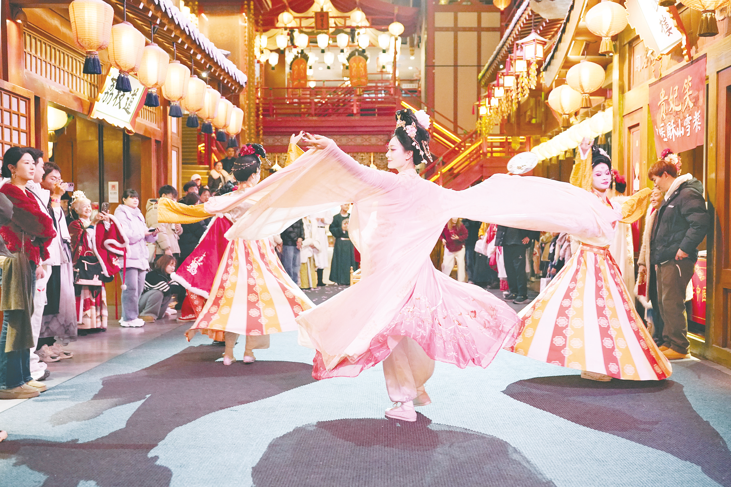 近期,经过焕新升级的西安长安十二时辰主题街区正式与游客见面。此次升级聚焦演艺、场景、互动等 方面,进一步提升了街区的沉浸感、互动性与文化感染力,使游客在古城西安能够更具象地感受大唐风 貌、领略大唐繁华。 新华社记者 邵瑞 摄 (来源:工人日报) 12月23日,演员在街区内进行沉浸式表演《乐舞胡旋》。 ...