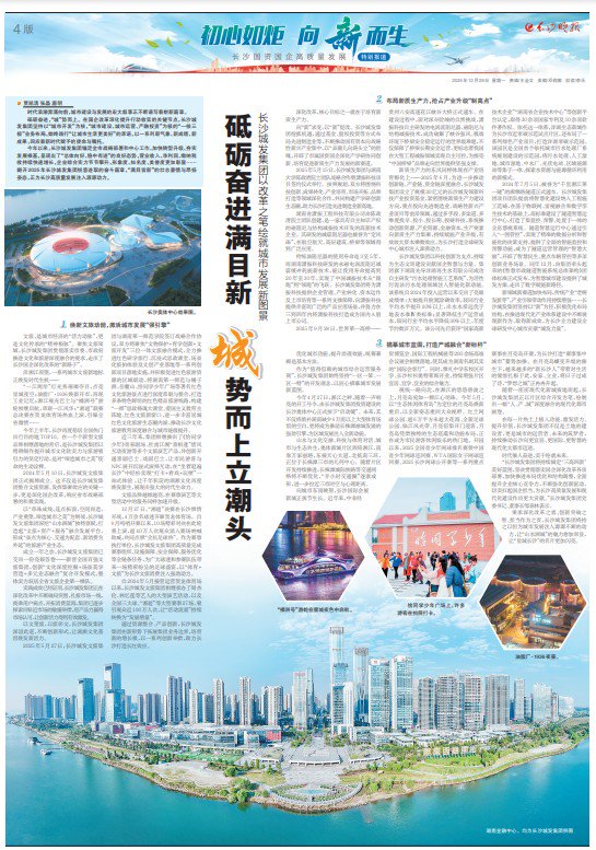 砥砺奋进满目新 "城"势而上立潮头 长沙城发集团以改革之笔绘就城市发展新图景 贾凯清 张晶 唐明 时代浪潮奔涌向前,城市建设与发展的宏大叙事正不断谱写着崭新篇章。 砥砺奋进,"城"势而上。在国企改革深化提升行动收官的关键节点,长沙城发集团坚持以"城市开发"为核,"城市建设、 城市运营、产融投资"为极的"一核三极"业务布局,始终践行"让城市生活更美好"的承诺,以一系列新气象、新成绩、新 成果,回应着新时代赋予的使命与嘱托。 今年以来,长沙城发集团锚定全市战略部署和中心工作,加快转型升级、夯实发展根基,呈现出了"总体向好、稳中有 进"的良好态势,营业收入、净利润、缴纳税收持续快速增长,企业综合实力节节攀升,形象度、知名度、美誉度更加彰 显……翻开2025年长沙城发集团锐意进取的奋斗篇章,"满目皆新"的壮志豪情与昂扬姿态,正为长沙高质量发展注入源 源动力。 以"串珠成线,连点拓面,空间再造,产业重塑,缔造城市之美"为纲领,长沙城发文旅集团深挖"山水洲城"独特禀赋, 打造起"文旅+资产+服务"融合发展平台,形成"景点为核心、交通为配套、新消费为外延"的旅游产业生态。 成立一年之余,长沙城发文旅集团已交出一份亮眼答卷— ...
