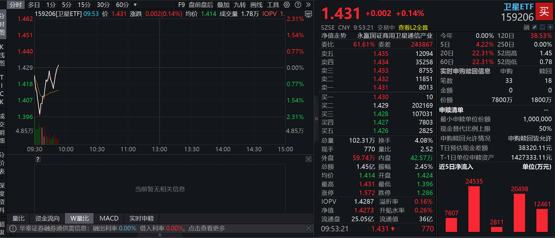 强势翻红冲击11连阳!卫星产业ETF(159218)升势不止,中国卫星涨6.15%再创10年新高
