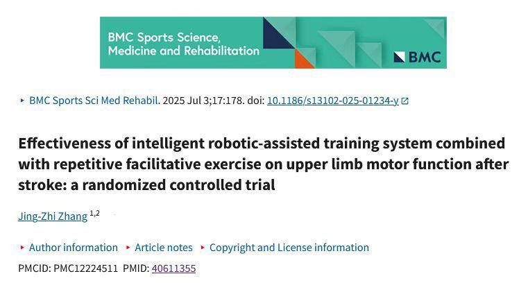 公司科研进展 - 南京明州康复医院康复治疗科青年骨干张敬之作为第一作者的研究论文成功发表于SCI期刊《BMC Sports Science, Medicine and Rehabilitation》[1] - 该研究标志着公司在康复医学领域的科研积累取得新进展,临床研究成果获国际学术界认可[1] - 该研究的成功发表是公司“以临床需求驱动科研创新,以科研成果反哺临床服务”发展理念的生动体现[13] 研究核心内容 - 研究论文题为《Effectiveness of intelligent robotic-assisted training system combined with repetitive facilitative exercise on upper limb motor function after stroke: a randomized controlled trial》[4] - 研究背景为智能机器人辅助训练已被证明可改善脑卒中后上肢运动功能,但需结合其他治疗方法以获得更好效果[5] - 研究旨在探讨智能机器人辅助训练结合重复性神经促通技术对脑卒中患者上肢运动功能的有效性[5] 研究方法与设计 - 研究采用三臂、单盲随机对照试验设计,共纳入76名脑卒中患者[6] - 患者被随机分配至IRAT组(25人)、RFE组(26人)和常规治疗组(25人)[6] - IRAT组接受智能机器人辅助训练结合重复性神经促通技术干预,RFE组仅接受重复性神经促通技术,常规治疗组接受常规疗法[6] - 干预每周进行5次,持续4周[6] - 主要结局指标是使用Fugl-Meyer上肢评估量表评估的上肢运动功能[6] 研究结果 - 干预后,IRAT组的Fugl-Meyer上肢评估量表评分显著高于RFE组和常规治疗组[7] - 干预后,IRAT组的运动学触及范围、主动参与比例评分也显著高于RFE组和常规治疗组[7] - 干预后,IRAT组的轨迹偏差、轨迹跟踪误差显著低于RFE组和常规治疗组[7] - 结论:对于脑卒中后上肢运动功能恢复,智能机器人辅助训练结合重复性神经促通技术比单独使用重复性神经促通技术或常规疗法更有效[8] 研究的临床意义与创新 - 研究聚焦脑卒中后上肢功能障碍这一临床重点与难点[10] - 研究创新性地将智能康复机器人训练与传统重复性神经促通技术相结合[10] - 该联合治疗方案可有效促进患者上肢运动功能恢复,并提升患者参与康复训练的积极性与治疗体验[10] - 研究不仅关注客观指标改善,也注重患者在日常生活活动中的实际应用能力,体现患者导向思维[10] 研究人员背景 - 第一作者张敬之是公司康复治疗科中坚力量和明州康复研究院技术委员会秘书[12] - 张敬之长期致力于脑卒中后运动功能重建的临床与研究,具备扎实技术并善于从患者反馈中捕捉研究灵感[12] - 由张敬之主导的康复方案因专业性和人性化设计深受患者信赖,多位患者反馈上肢功能与生活自理能力获得实质性提升[12] 公司科研能力建设 - 公司近年来不断加大对科研创新的支持力度,通过引进智能康复机器人等先进设备搭建高水平科研平台[13] - 公司积极营造科研氛围,出台激励政策,组织学术交流,并选派骨干参加国内外专业培训以提升人才科研能力[13] - 此次研究发表说明公司已具备持续开展高质量临床研究的能力,增强了全院医务人员投身科研的信心[13] 行业与学术影响 - 研究发表于中科院三区期刊《BMC Sports Science, Medicine and Rehabilitation》,该刊影响因子为2.8[12] - 此次SCI论文的发表显著提升了公司在康复医学领域的学术影响力,也为全院医护人员树立了榜样[13] - 公司将继续鼓励临床人员结合实践开展科学研究,推动康复技术不断进步[13]