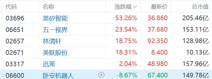 港股6只新股30日齐挂牌!英矽智能暗盘暴涨53%,五一视界涨23%,林清轩涨18.75%,美联股份涨18.31%,卧安机器人跌8.67%