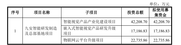 目前,全球智能摄像机市场达千亿规模,且具有场景多样化、需求个性化的特征。 据招股书,九安智能是一家智能视觉产品制造商、物联网运营服务商和物联网技术方案提供商。公司以 视觉成像及分析技术、无线传输技术、物联网平台技术及AI视觉应用模型为核心,自主研发、生产及 销售智能硬件产品,并利用物联网云平台提供运营服务,构建起"硬件+平台+服务"一体化模式。 招股书提示,公司实际控制人李沅通过直接和间接持股的方式合计控制公司74.29%的股份,或需注意 实际控制人不当控制风险。 | 序号 | 项目名称 | 子项目 | 投资总额 | 拟使用募 集资金 | | --- | --- | --- | --- | --- | | | 九安智能研发制造 及总部基地项目 | 智能视觉产品产业化建设项目 嵌入式智能视觉产品研发升级 项目 | 42,208.70 17.186.83 | 42,208.70 17,186.83 | | | | 物联网云平台升级项目 | 22,735.86 | 22,735.86 | 智通财经APP获悉,12月25日,广东九安智能科技股份有限公司(简称:九安智能)深交所创业板IPO已 受理。申万宏源证券为其保荐 ...