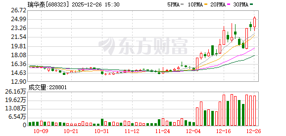 证券日报网讯 12月26日,瑞华泰发布公告称,深圳瑞华泰薄膜科技股份有限公司(以下简称"公司") 股票交易连续 3个交易日内(2025 年 12 月 24 日、2025 年 12 月 25 日、2025 年 12 月 26 日)收盘价格 涨幅偏离值累计达到 30%,根据《上海证券交易所交易规则》《上海证券交易所科创板股票异常交易 实时监控细则》的有关规定,属于股票交易异常波动情形。经公司自查,并发函问询公司第一大股东, 截至 2025 年 12 月 26 日,公司及第一大股东不存在影响公司股票交易异常波动的重大事项,亦不存在 其他应披露而未披露的重大信息,包括但不限于重大资产重组、股份发行、上市公司收购、债务重组、 业务重组、资产剥离和资产注入等重大事项。公司未发现前期披露的信息存在需要更正、补充之处。 (文章来源:证券日报) ...