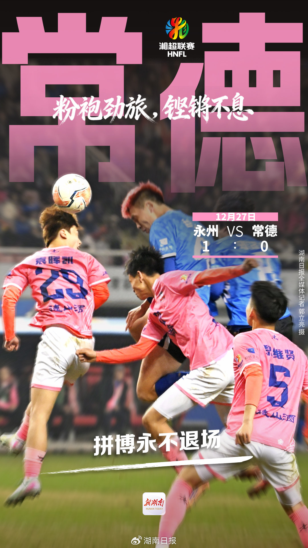 "穿得最粉,踢得最狠!"虽憾负决赛,但风骨铿锵。 常德队以贯穿赛季的沉稳与坚韧,赢得了所有人的尊重。亮眼的粉袍,已是湘超赛场不屈的象征;老中青三代球员的传承,奠定了团队底色。 决赛终场哨响,"一城一心"的力量从未消散。征程暂歇,荣光不灭,粉袍劲旅,下季再逐巅峰! 拼博永不退场 MMA 6 湖南日报 湘超联赛 HNFL 粉狗劲旅, 型等不 9月20日 娄底 常德 WS 2 2 0 . 三天永华 摄 TE TE UT HE Fale 0 l l M PARTY 1 6 湖南日报 湘超联赛 HINFL 型器不足 粉袍劲旅, l I 10月31日 EHH 常德 VS 怀化 摄 1 0 . . "沅水双城对决" FIN M M N F 6 湖南日报 湘超联赛 HINFL 周年生 110 11月22日 常德 VS 益阳 4 0 . . 射手王赵文获 锋芒毕露! M M T 1 6 湖南日报 南日报全媒体记者 郭立亮 摄 湘超联赛 HINFL 型号 分袍劲旅, 南日报全媒 11月29日 品立营 永州 VST 常德 1 量 客服求州 破其主场不败金身 IM IAN TODAY 8, 湖南日报 湘超超 HINE D 2 9 2 ...