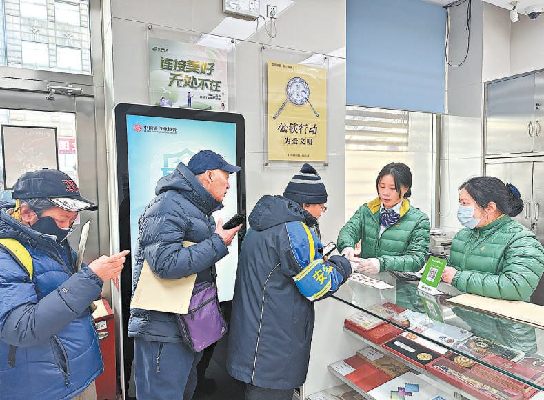 昨天早上,集邮爱好者冒着严寒排队购买马年生肖邮票。本报记者 白继开摄 本报讯(记者 胡子傲)昨天,《丙午年》生肖特种邮票正式发行。消费者可以在全国指定邮政网点、中国邮政 网上营业厅、中国邮政App、中国邮政微邮局公众号和中国邮政商城微信小程序购买马年生肖邮票。昨天早上, 北京邮政各销售网点已排起长队,大批集邮爱好者冒着严寒等候,只为第一时间一睹马年生肖邮票的真容。 《丙午年》特种邮票全套共2枚,第一枚邮票图案名为"驰跃宏图",图中红马踏云、鬃毛如焰;第二枚邮票图案 名为"万骏臻福",图中三骏并驰、祥纹环绕。全套邮票面值2.40元,计划发行套票2668万套,版式二162万版, 小本票280万本。 早上8点,西城区马尾沟支局门前,等候购买马年生肖邮票的队伍沿街延伸,邮迷们裹紧冬装、戴好帽巾,脸上 满是期待。"我6点就来了,就想抢个首发好彩头,马年邮票寓意好,收藏价值也高。"家住海淀的张先生说。队 伍中,有白发苍苍的老邮迷,也有年轻的"新藏家",大家站在护栏内,交流集邮心得,畅谈对马年邮票的期 待。记者注意到,工作人员提前设置了排队护栏、张贴购票指引、增派工作人员,确保发售平稳进行。 在昨天上午举行的《丙午年》特种 ...