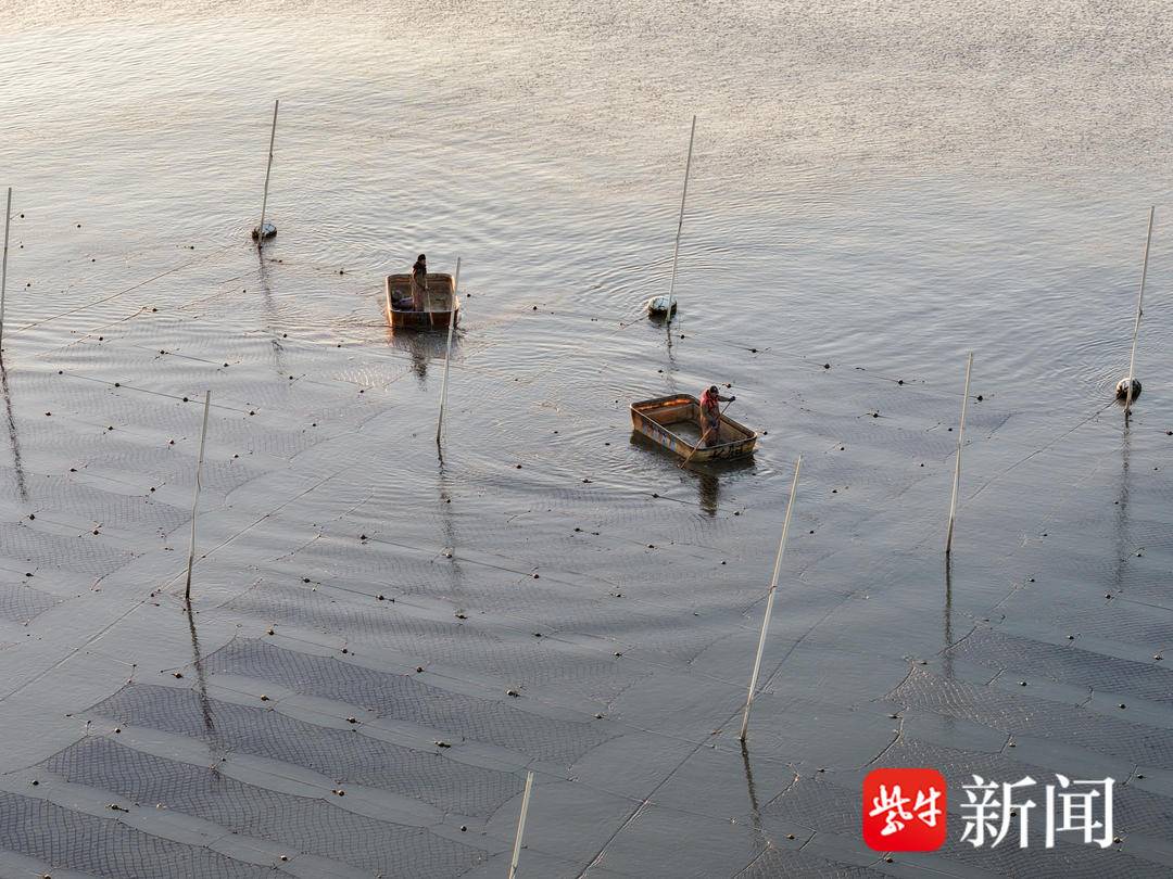 t . THE ** 新闻 ** 新闻 2026年1月8日,在江苏省连云港市赣榆海州湾海洋牧场紫菜养殖区,渔民驾驶渔船开展生产作业。 目前,江苏省连云港市海州湾海洋牧场贝类、藻类养殖正处于冬季管护期,渔民们驾驶渔船在海面上穿梭,进行添加养殖浮漂、清理海草等作业,呈现出 一派"海上冬耕"生产的繁忙景象。 通讯员司伟扬子晚报/紫牛新闻记者张凌飞 校对陶善工 ...