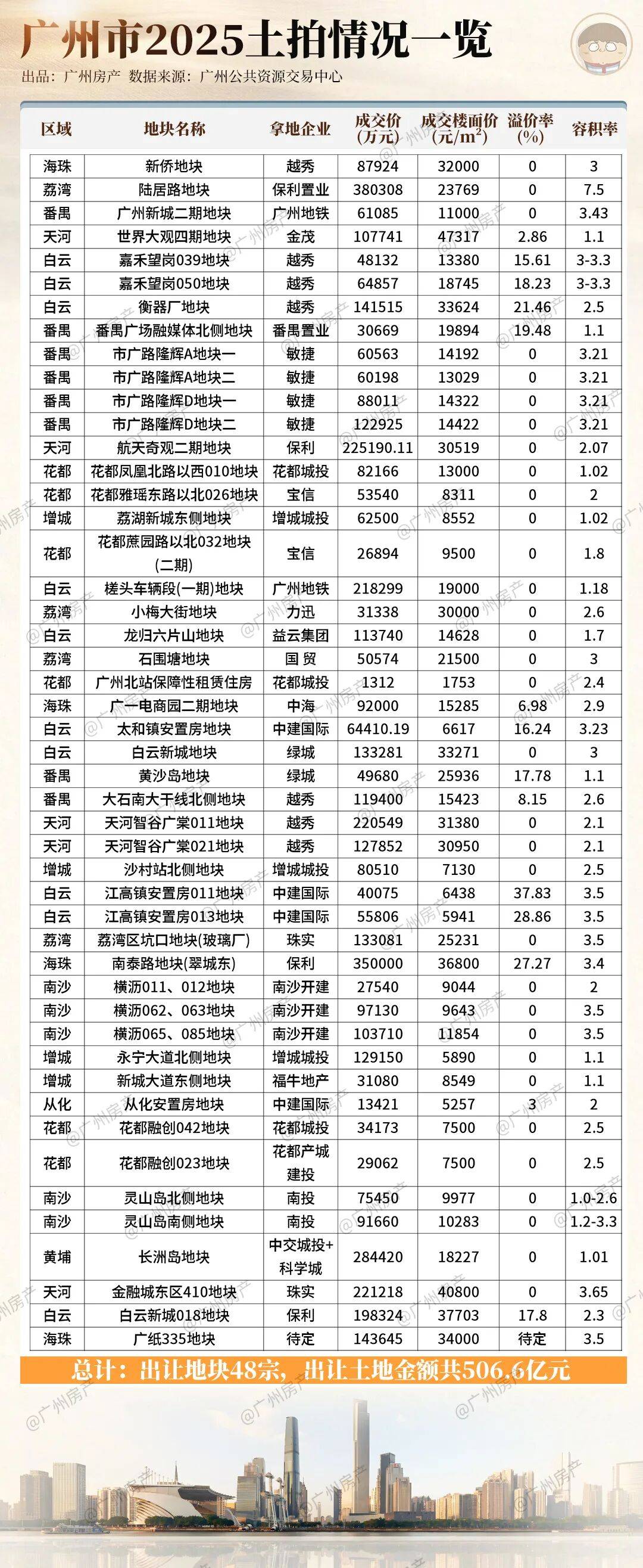 吸金超506亿,广州卖了48宗地,明年中心区大把好货(附表)