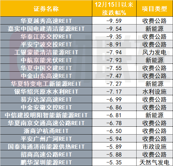 REITs 周度观察(20251215-20251219):二级市场价格跌幅较大,市场交投热情环比下降-20251220