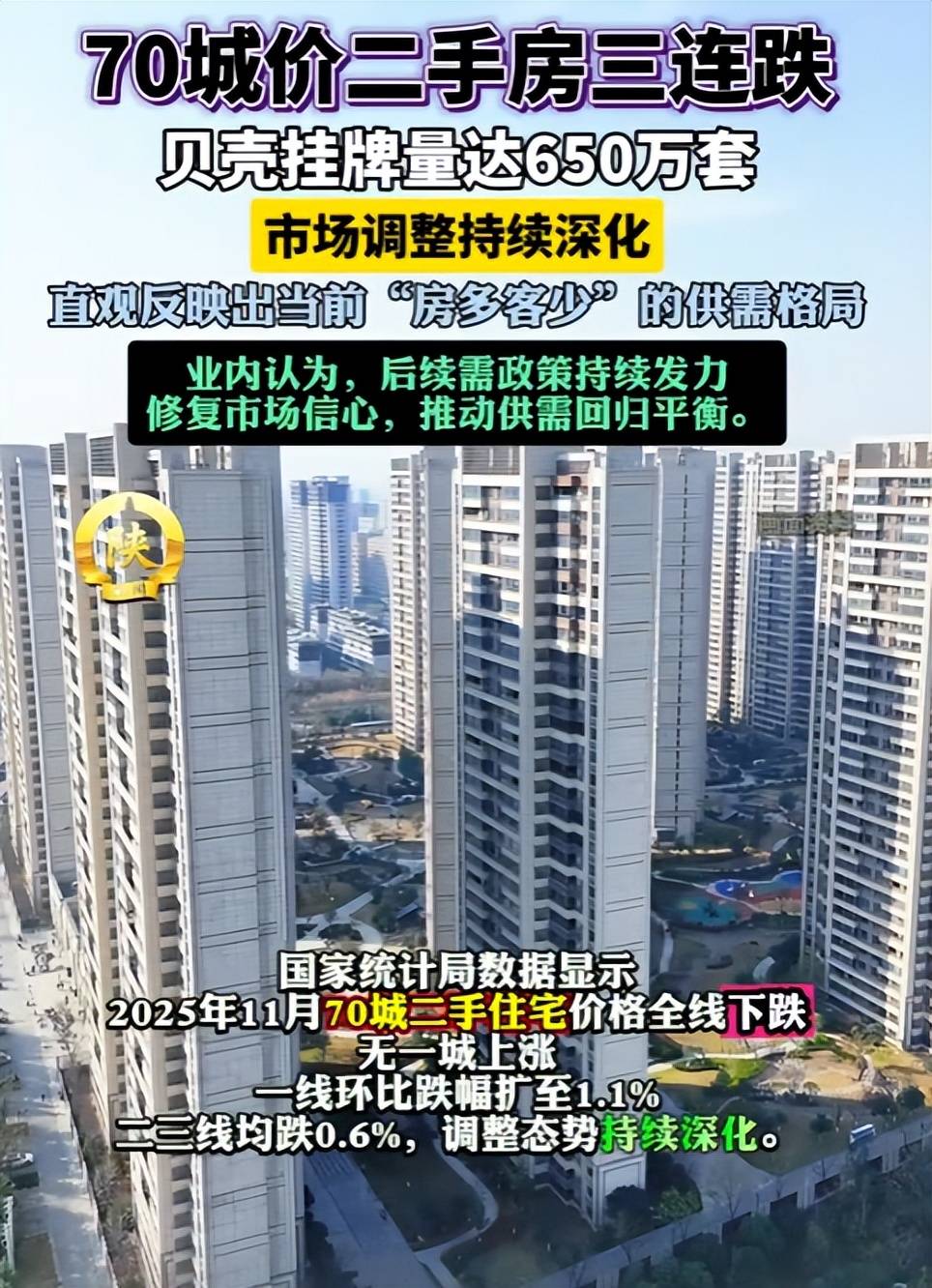 11月全国70城二手房价同比降幅扩大,广州跌幅达7.2%,挂牌量暴涨