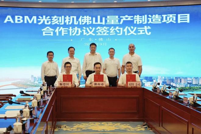 近年来,佛山将半导体及集成电路产业作为战略性新兴产业重点培育,已初步构建起覆盖材料、设计、 制造、封测、装备等环节的完整产业链生态。截至目前,全市集聚规模以上半导体企业336家,产业规 模突破900亿元,广东先导稀材光芯片项目、蓝箭电子芯片封测基地等一批重大项目相继落地,形成"链 主引领、多点支撑"的发展格局。 9月30日,佛山市与ABM, Inc. Asia Pacific Ltd.(以下简称"ABM")签订合作协议,广东唯一的光刻机量 产项目——年产百台套光刻机及先进封装核心设备生产基地项目落户佛山。佛山市市长白涛出席签约仪 式。 ABM成立于2003年,总部位于中国香港,深耕半导体光刻设备领域逾20年,在中国内地、中国台湾及 日本设有分支机构与研发中心。公司坚持自主研发制造,掌握超过2000项光刻机关键零部件的专有技 术,涵盖光源系统、光路系统、工件台系统、测量与对准系统、掩模版与掩模台机构、环境控制系统等 核心技术。截至目前,ABM已向全球超300家客户累计交付近1000台(套)设备,其中70%客户位于中 国内地,产品广泛应用于集成电路前道制造(如MEMS、化合物半导体、功率器件)以及先进封装 (TS ...