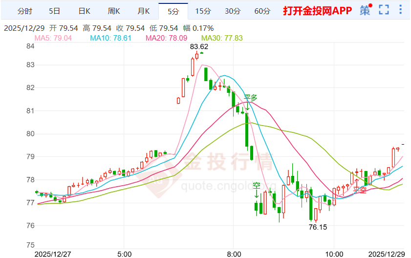 【最新国际白银行情解析】 今日周一(12月29日)亚盘时段,国际白银目前交投于77.98一线上方,今日开盘于81.33美元/盎司,截至发稿,国际白银 暂报79.68美元/盎司,上涨0.71%,最高触及83.62美元/盎司,最低下探76.14美元/盎司,目前来看,国际白银盘内短线 偏向看涨走势。 【要闻速递】 当地时间12月28日下午,北京时间今天(12月29日)清晨,美国总统特朗普与乌克兰总统泽连斯基在美国佛罗里达州海湖 庄园的会晤结束。特朗普称,会谈取得了很多进展,但仍有棘手问题待解决,俄乌"和平计划"中关键的领土问题就尚未 达成一致。 对于向乌克兰提供安全保障问题,泽连斯基称,美乌安全保障已100%达成一致,特朗普则称已达成95%。 在被问及谈判时间表时,特朗普表示,如果进展顺利,可能"几周内就会有结果",若进展不佳则可能拖延甚至无法达成 协议。他强调,这是一项"极其复杂、细节密集的谈判",但他"认为最终能够完成"。 自11月21日触及48.64美元低点以来,白银已累计上涨超过28.67美元。鉴于当前强劲的上涨动能,投机者似乎正意图提 前挑战2026年100美元或更高的目标价位。 其他值得关注的是,自11 ...