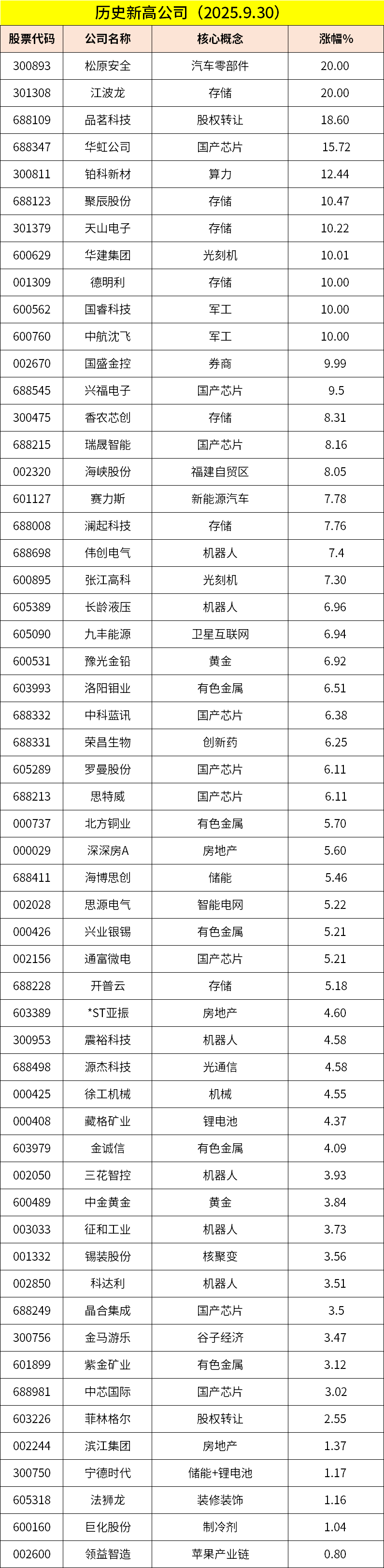 海外市场与科技动态 - 美股主要指数上涨,纳指涨1.12%,标普500涨0.59% [1] - AMD股价近五个交易日累计涨近40%,因其与OpenAI达成战略合作并部署GPU芯片 [2] - 国庆假期伦钴涨超11%,伦铜涨超6%,现货黄金突破4000美元/盎司,年内涨幅超50% [2] - 韩国和美国DRAM厂商暂停报价,预计第四季度DRAM报价可能上涨30%以上,部分规格涨幅或突破50% [3] - 马斯克的xAI即将完成与英伟达芯片相关的200亿美元融资,英伟达股权投资达20亿美元 [6] - 软银拟收购工业机器人巨头ABB的机器人业务 [9] 国内政策与宏观数据 - 国务院办公厅发文,在政府采购中给予本国产品20%的价格评审优惠 [13] - 央行将于10月9日开展11000亿元买断式逆回购操作,期限3个月 [13] - 中国9月末黄金储备为7406万盎司,为连续第11个月增持 [13] - 国家发改委下达今年第四批690亿元超长期特别国债,支持消费品以旧换新 [13] - 中秋国庆假期全社会跨区域人员流动量预计24.32亿人次,日均3.04亿人次,同比增长6.2% [13] 人工智能与科技创新 - Sora 2出圈,登顶榜首阶段性超Gemini [4] - 苹果搁置头显升级计划,优先开发可媲美Meta的智能眼镜 [7] - 阿里巴巴通义千问技术负责人组建内部机器人AI团队 [11] - 蚂蚁百灵大模型开源其思考模型Ring-1T-preview,参数量达1000B [13] - 火山引擎发布豆包大模型1.6-vision,智谱发布并开源新一代大模型GLM-4.6 [13] 黄金与有色金属 - 国际现货黄金价格历史性突破4000美元/盎司,现货白银触及49美元/盎司,为2011年以来首次 [14] - 港股赤峰黄金大涨23.54%,山东黄金涨15.6% [14] - 券商观点认为全球货币信用体系重构及央行购金构成黄金长期牛市核心支撑 [14] 半导体与存储芯片 - OpenAI CEO访问韩国,与三星和SK海力士达成协议,预测AI项目月需求可能达90万片晶圆,为当前全球HBM产能两倍多 [16] - 存储行业为寡头市场,DRAM市场被三星、海力士、美光三家垄断,份额超90% [16] - 假期海外存储公司股价爆发,SK海力士涨近15%,美光科技涨超17% [16] 核聚变与高端制造 - 中国核聚变装置BEST建设取得关键突破,重400余吨底座安装就位,将承载总重约6700吨主机 [11][15] - 该装置有望在2030年通过核聚变点亮第一盏灯 [15] - 国庆期间美股核聚变概念股大涨,NANO Nuclear Energy累计涨超46% [15] 上市公司公告与动态 - 芯原股份预计第三季度营业收入12.84亿元,创历史新高,环比增119.74%,新签订单15.93亿元,AI算力相关订单占比约65% [19] - 永和股份前三季度归母净利为4.56亿元到4.76亿元,同比增长211.59%到225.25% [19] - 赛力斯9月新能源汽车销量达4.47万辆,同比增长19.44% [22] - 润建股份拟中标17.53亿元陆上风电项目,滨化股份投资14.21亿元建设源网荷储一体化项目 [22] - 新亚电子在AI服务器高速铜缆需求增加背景下有序扩产 [22] 市场表现与资金动向 - 多家券商对节后A股行情表示乐观,认为新一轮上行动能正在蓄势,"红十月"可期 [12] - 10月9日多家公司面临解禁,中复神鹰解禁市值84.24亿元,解禁比例33.16% [25] - 历史新高公司包括松原安全(涨20%)、江波龙(涨20%)等,概念涉及存储、算力、国产芯片等 [21][23][24]