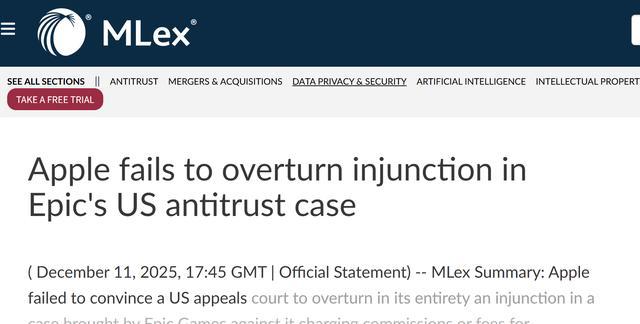 苹果(AAPL.US)与Epic拉锯战上诉失败 禁止27%佣金但准许知识产权费