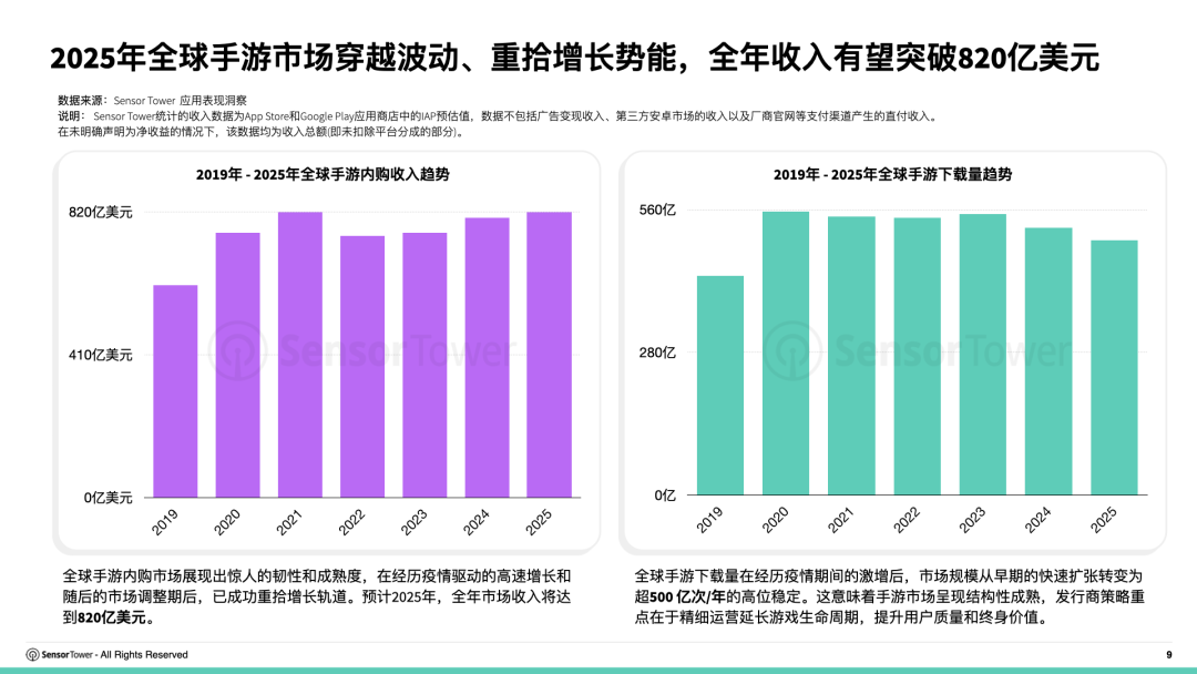 SensorTower:预计2025年全球手游市场内购收入将达到820亿美元
