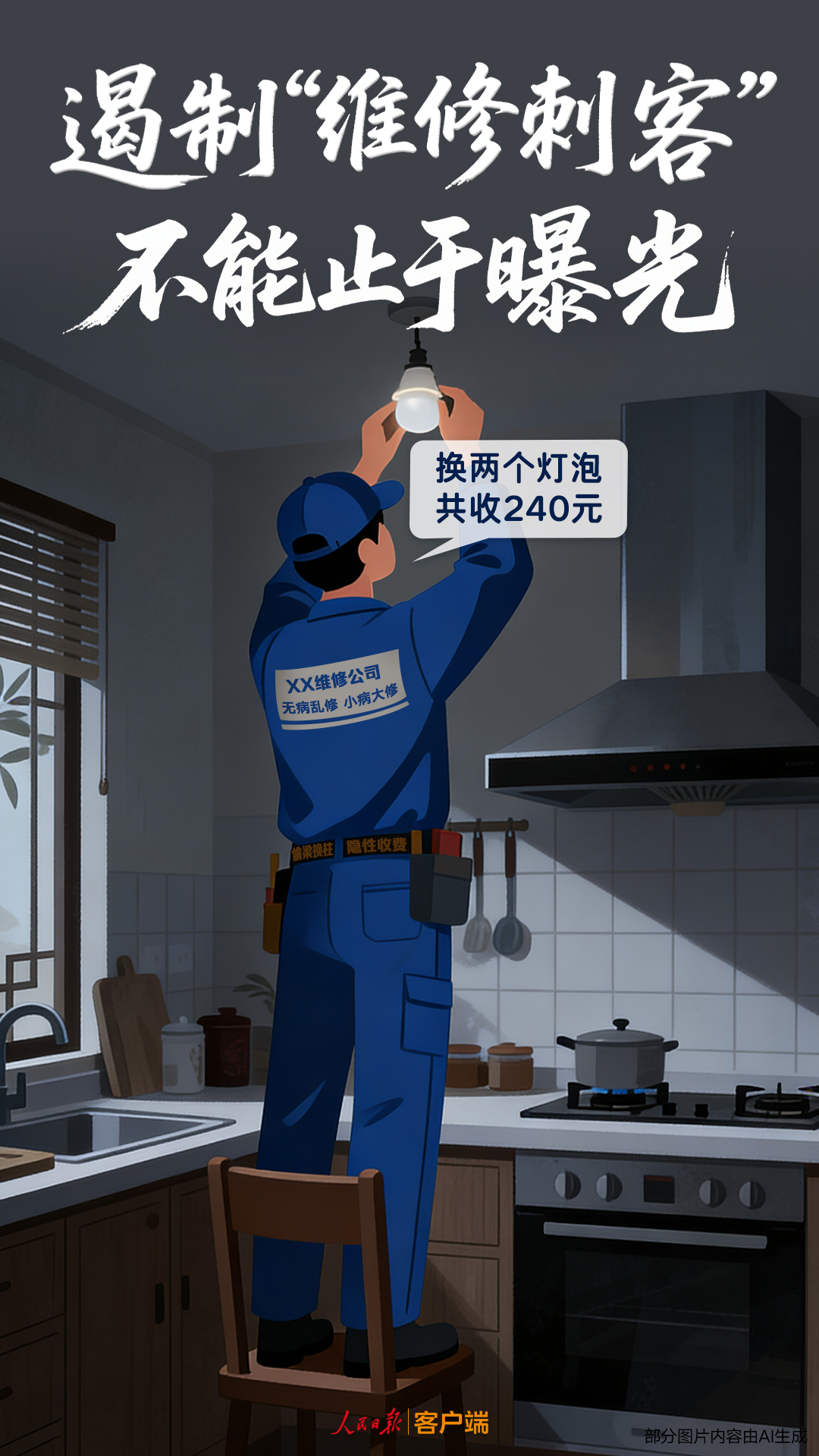 上门换俩灯泡,收费240元。不久前,消费者张先生预约上门维修服务时的遭遇,让不少网友产生共鸣。便宜材料高价卖,人工费用糊涂账,收费标准拿 不出……频频出现的"维修刺客"令消费者防不胜防。 上门维修行业乱象不是第一次被曝光,很多网友也纷纷分享自己的"踩坑"经历。有的"无病乱修、小病大修",夸大故障,动辄换主板、换电机,实则只是 简单问题;有的"虚假收费、隐性收费",提前未加沟通,修理后要求支付上门费、检测费,甚至无中生有耗材费;还有的"瞒天过海、偷梁换柱",冒充官 方维修,暗中调包零部件……收费不靠谱,维修不到位,这些行为侵犯了消费者合法权益,还会造成安全隐患,"维修小事"成为不少消费者的"心头大 患"。 监管必须"长出牙齿",相关部门需加强日常监管,畅通举报渠道,对人民群众投诉集中的恶意虚构故障、强制消费等行为依法处罚,真正形成震慑。同 时,相关行业协会标准亟待建立,制定维修作业规范,明确合理收费空间。网络平台应做好实名认证、资质公示等,对不法商家建立"黑名单",切实承担 起责任。 维修,修的是故障,维的是人心。唯有各方行动起来,压减"维修刺客"的生存空间,维修行业的发展才更可期,千家万户的生活才更省心。 海 ...