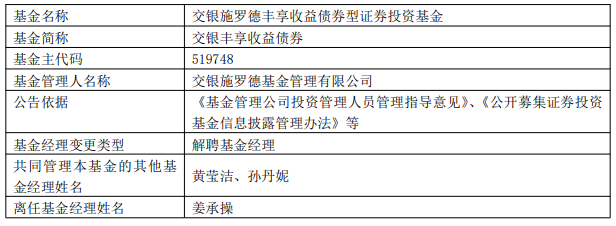 交银施罗德基金姜承操离任4只债券基金