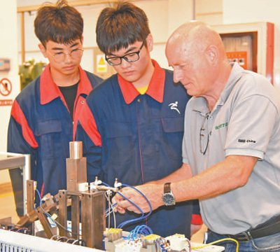 本报记者 姚雪青 培训操作技能。 樊春吉摄 企业导师指导苏州职业技术大学学生在车间实践。 叶 军摄 德国技术人员为苏州健雄职业技术学院学生 数据来源:教育部、苏州市教育局等 创新办学模式,深化产教融合、校企合作,鼓励企业举办高质量职业技术教育,探索中国特色学徒制。 ——摘自"十四五"规划纲要 围绕科技创新、产业发展和国家战略需求协同育人。 ——摘自"十五五"规划建议 "学校与企业,不用再二选一了!"手握"双兼双聘"工作合同,36岁的博士许正典对未来信心满满——他 既是苏州职业技术大学教师,也是苏州绿的谐波传动科技股份有限公司员工。这份工作合同,源自江苏 省苏州市吴中经济技术开发区机器人与智能制造产教联合体内的一场集中签约,8家高校与8家企业达成 共识,联合引育高层次人才。 "十四五"时期,吴中经开区机器人与智能制造产教联合体、太仓中德智能制造产教联合体,先后入选教 育部评选的国家级市域产教联合体名单。职业教育和地区产业发展如何双向奔赴?苏州的探索有哪些亮 点?记者进行了采访。 密切联动,校企合作更深入 "双重身份,也是双重动力。"许正典说,成为学校和企业联合引育的高层次人才后,自己在项目资源方 面获得了更多支 ...