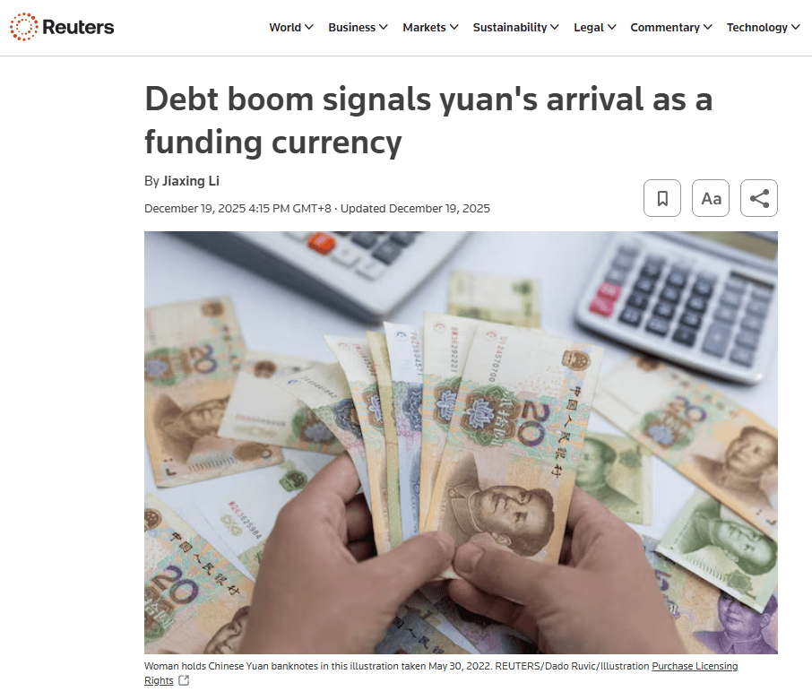 全球媒体聚焦|外媒:人民币融资掀国际热潮 市场需求成核心驱动
