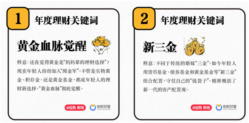2025年度理财关键词反映的投资者行为趋势 - 核心观点:由蚂蚁财富与小红书联合发起的投票显示,2025年投资者理财观念升级,资金从现金储蓄流向多元金融资产,资产配置理念逐渐形成 [1][3][5] - 超过2万名网友票选出五大年度理财关键词,按排名依次为“黄金血脉觉醒”、“新三金”、“存款搬家”、“A股回暖”和“AI叙事理财” [1][3] - “黄金血脉觉醒”排名首位,反映黄金成为2025年年轻人的理财新选择 [3] - “新三金”位列第二,指代由货币、债券、黄金基金构成的年轻一代配置组合,不同于传统婚嫁概念 [3] - “AI叙事理财”因股市AI板块活跃及AI产业链成为年度核心热点而入选 [3] - “存款搬家”与“A股回暖”也备受关注,体现了资金流向的变化 [3] 行业与机构对趋势的解读与引导 - 经济学家香帅指出,资金正流向黄金、基金、股市、保险等领域,是“用脚投票” [5] - 香帅认为“新三金”等配置方法是投资者构建投资的“安全锚点”,在稳住基本盘的同时,也需在AI叙事中寻找增长方向 [5] - 国家金融与发展实验室财富管理研究中心主任王增武认为,关键词反映了居民现金储蓄向金融资产流动的趋势,居民投资金融资产的积极性提高,资产配置理念逐渐形成 [5] - 行业在2025年加码引导资产配置理念,以帮助投资者提升能力 [5] - 以蚂蚁基金为例,其在2025年对“蚂蚁理财金选”进行了工具化升级:一是将金选方法论与筛选指标应用至全平台,更客观透明地呈现基金分析维度和数据;二是引导用户从“单一选基”转向“分散配置”,通过重新划分和细分赛道,帮助用户理解大类资产分类并建立均衡配置观念 [5] 投资者行为具体案例与2026年机构展望 - 一位“95后”投资者实践“新三金”思路,将资金分为三部分:一部分用于日常生活,配置于货币基金和银行理财;一部分配置于封闭期半年以上的债基和“固收+”产品;一部分闲钱配置于黄金、指数基金和A股 [6] - 2025年投资者关心的股市与黄金,也是2026年机构的重点关注方向 [7] - 进入2026年,多家机构继续看好A股表现,富国基金认为市场对“春季躁动”预期强化,机会大于风险,中长期在政策与产业周期共振下,市场基本面有望巩固,资金积极变化汇聚,A股长期向上逻辑未改 [7] - “淘金热”贯穿2025年全年,与黄金相关的关键词占据了年度关键词的两席 [7] - 永赢中证沪深港黄金产业股票ETF的基金经理刘庭宇认为,近期金银铜齐创历史新高,无论从美联储中期降息周期、滞胀环境下的交易型资金,还是逆全球化、去美元化趋势下的长期配置资金来看,黄金和黄金股或仍有进一步上行空间 [8]