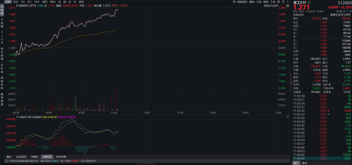 军工ETF(512660)飘红,机构聚焦商业航天与十五五规划机遇