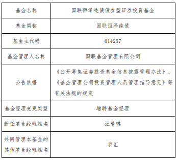 国联恒泽纯债增聘汪曼琪