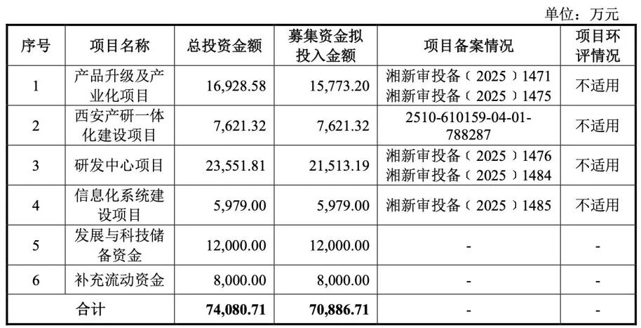 公司IPO与募资计划 - 长沙北斗产业安全技术研究院集团股份有限公司IPO获批,正式冲刺科创板上市[2] - 公司拟募资总额为7.09亿元,用于产品升级及产业化等6大项目[2] - 募资具体投向包括:1.2亿元用于发展与科技储备资金,8000万元用于补充流动资金[2] 募投项目详情 - 6个募投项目总投资额合计为74,080.71万元,拟投入募集资金合计为70,886.71万元[3] - 主要项目包括:产品升级及产业化项目(拟投15,773.20万元)、西安产研一体化建设项目(拟投7,621.32万元)、研发中心项目(拟投21,513.19万元)、信息化系统建设项目(拟投5,979.00万元)[3] 公司业务与行业定位 - 公司是深耕卫星导航与航天测控领域的电子仪器企业[2] - 核心产品包括导航模拟器、卫星测控仪器、无人机防控设备等[2] - 业务布局精准踩中国家战略发展核心赛道,覆盖导航仿真与测试、时空安全与增强、航天测控与测试三大方向[3] - 产品是航天、国防、低空经济等领域不可或缺的关键仪器[3] 行业意义 - 公司冲刺上市是国产电子仪器领域的重磅消息[2] - 公司成为电子仪器赛道冲刺上市的新晋选手[2] - 公司为国产高端测试仪器的国产化替代添上了浓墨重彩的一笔[2]