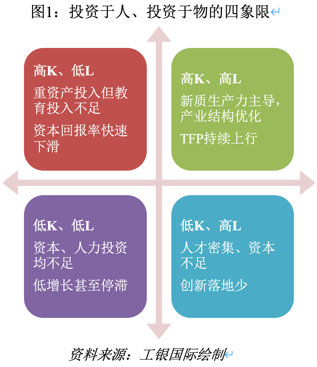文章核心观点 - 经济增长逻辑正从以扩大投资规模为导向的加法式增长 转向投资于人和投资于物相结合的乘法式发展 根本目标是推动全要素生产率的持续提升 [1] - 实现乘法效应需聚焦三条路径:发展新质生产力 释放人力资本质量红利 建立物质资本与人力资本的同步投入机制 [1] 投资政策逻辑的转变 - 投资政策逻辑正在发生转变 从2023年中央财经委员会提出结合 到2025年政府工作报告明确其地位 再到十五五规划建议将两者并列写入 是对增长方式的系统重塑 [2] - 理论基础源于柯布-道格拉斯生产函数 在数字经济时代K与L的内涵扩展 K包括制造业升级投资 数字基础设施 数据要素等 L涵盖技能水平 健康状况 教育质量 创新能力等多维度 [2] - 目标是利用四象限框架 将经济运行从高K低L模式迁移至高K高L的新质生产力模式 核心是通过政策与市场机制把K和L从加法关系变成乘法关系 以K×L提升全要素生产率 [3] 发展新质生产力路径 - 投资于物的关键是投得更有效 扩大有效投资 未来高回报资本具备技术外溢效应 规模可扩展性与跨行业赋能能力 如人工智能模型 先进算力 工业互联网平台 绿色装备等 [6] - 投资于人的核心是通过人的能力提升撬动发展 在技能培训层面深化产教融合 在高等教育层面优化学科布局加强创新人才培养 实现科研与产业创新联动 [7] - 技术突破将沿供应链 产业链与价值链扩散 形成物的升级×人的升级的乘数效应 系统性提升TFP 推高资本回报率 新质生产力动能正在加速显化 [7][8] 释放人力资本质量红利路径 - 投资于人的核心是培育人力资本 使人口红利转化为质量红利和人才红利 2009~2023年间劳动力质量提升推动经济增长0.78个百分点 显著高于劳动力数量变化贡献的0.09个百分点 [10] - 加大人力资本投资能够扩大高知识 高技能人才供给 2024年中国高等院校入学率达77% 大幅高于世界平均水平的44% 未来将培养更高知识密度和创新能力的人才 [11] - 自2020年起硕士和博士研究生规模持续扩大 为基础学科拔尖创新人才培养和前沿领域国家学院建设奠定基础 构建覆盖全生命周期的职业技能培训体系是重要保障 [11] 建立同步投入机制路径 - 物质资本K与人力资本L在中长期会通过技术吸收 结构调整和产业升级相互影响 需确保两者协同提升才能发挥全要素生产率的潜在乘数效应 [12] - 两类投资深度互为条件 互为放大器 高质量资本投入倒逼人力资本体系跃升 人力资本积累提高技术采用效率和创新能力 使单位资本产出率提升 [13] - 只有在两类投资同步推进 形成互补时 资本才能进入高回报场景 劳动力能充分发挥技能优势 形成生产率持续提升 经济高质量增长的良性循环 [13]