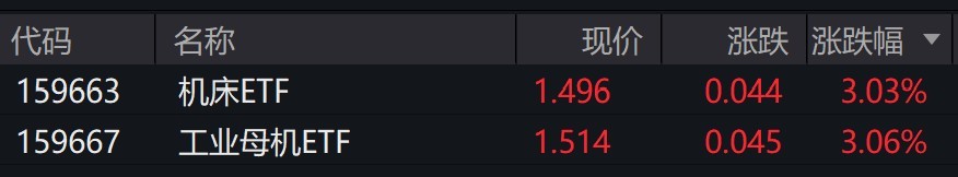 机床概念股走强,机床ETF、工业母机ETF涨超3%