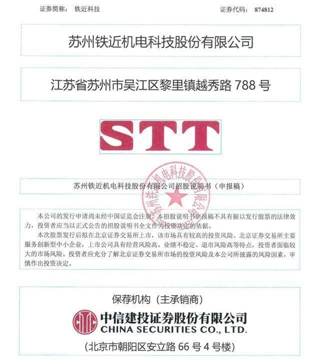 瑞财经 吴文婷12月25日,苏州铁近机电科技股份有限公司(以下简称"铁近科技")北交所IPO获受理。 本次IPO的保荐机构为中信建投证券股份有限公司,保荐代表人为关峰、孟杰,会计师事务所为天职国 际会计师事务所(特殊普通合伙),律师事务所为上海市锦天城律师事务所。 综上,陈志强合计控制公司55.19%的表决权且担任公司董事长,为公司的控股股东、实际控制人。 铁近科技主要从事微型轴承研发、生产和销售,通过自主创新,掌握了微型轴承尤其是特微型轴承研发 设计、生产制造、品质检测的全套生产工艺,公司秉承"创卓越品牌,铸百年铁近"的企业愿景,致力于 成为国际领先、具有竞争优势和行业影响力的微型轴承企业。 据招股书,2022年-2024年及2025上半年,铁近科技实现营收分别为2.07亿元、2.74亿元、2.84亿元、 1.72亿元;归母净利润分别为4827.62万元、5986.56万元、4863.13万元、2962.25万元。 | 项目 | 2025年6月30日 | 2024年12月31日 | 2023年12月31号 | 2022年12月31日 | | --- | --- | --- | --- | --- | | | ...