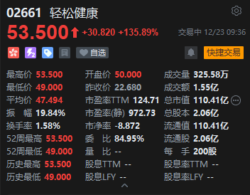 港股异动丨轻松健康首日上市高开120%,市值突破百亿