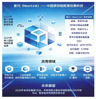你有没有过这样的抓狂时刻?在地下车库找车,手机遥控半天没反应;打游戏鼠标迟钝,关键时刻总掉链 子;家里智能设备一堆,遥控器却总是"停摆"……别急,一项中国原创的"黑科技"—星闪(NearLink),带着 它的"超能力"来了!星闪就像给所有智能设备安装了"超高速神经",让万物互联从此又快又稳。 经过两年努力,2022年,星闪首个技术标准发布;2023年,华为推出首款支持星闪的终端产品,实现高品质无 损音频传输,标志着技术进入实际使用阶段。 据产业预测,到2025年,支持星闪的芯片年出货量将突破1亿片,覆盖智能汽车、家电、工业设备等50余个 场景。 2025年11月,在国际电信联盟(ITU)无线电通信部门会议上,星闪无线短距通信的关键技术,被正式写入相 关国际建议书。这意味着,中国技术为全球短距通信标准演进,进行了实质性提升,从"追随者"转变为"重 要贡献者"。 被"卡脖子"后,我们亮出了"王牌" "星闪"不是什么冷冰冰的科幻名词,而是能实实在在改善我们生活的"黑科技"。 作为新一代短距无线通信技术,星闪不仅打破传统技术瓶颈,更已从实验室走向生产生活,成为推动万物互 联升级的"中国力量"。 回溯2020年,全球短 ...