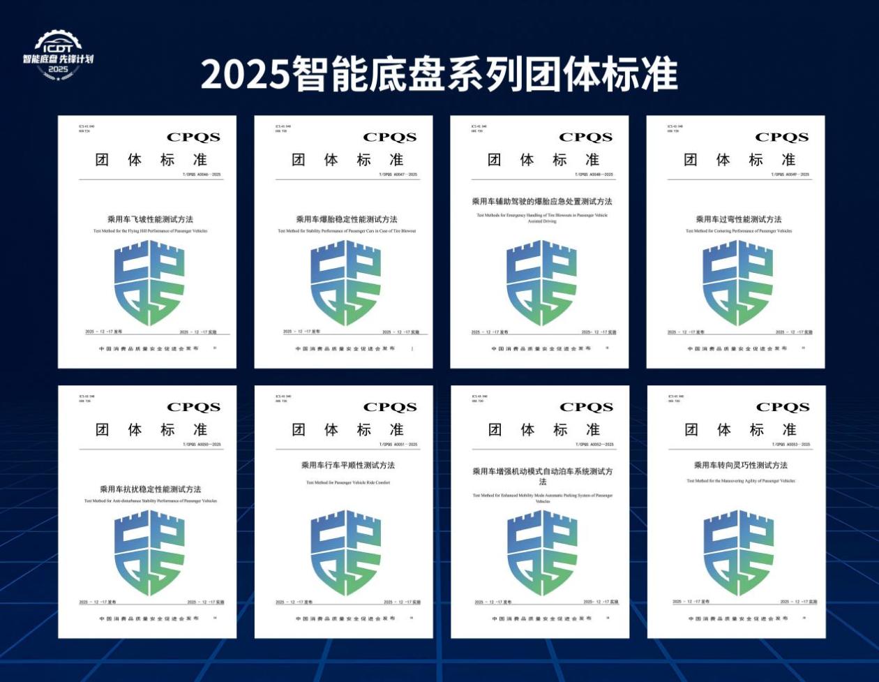 为契合用户关注的用车场景并引导智能底盘技术发展,8项智能底盘系列团体标准由中国消费品质量安全促进会与中国汽车工程研究院股份有限公司牵头, 联合国内主机厂、零部件供应商、高校等行业专家,经过多轮技术研讨与实车验证后推出。标准涵盖18项具体测试工况,聚焦智能安全、智能舒适、智能操 控、智能融合4大维度,形成了从单项验证到系统化交叉评价的完整测试评价体系。标准首次提出高风险工况测评、智智融合测评场景、扰动模拟标准化、 评价指标标准化、评价体系化五大创新点,填补了智能底盘在用户场景化测试领域的空白。 近日,中国消费品质量安全促进会正式发布T/CPQS A0046—2025至T/CPQS A0053—2025共8项智能底盘系列团体标准。智能底盘作为自动驾驶技术的基 础,其技术进步和产业化应用对于中国汽车产业至关重要。该套标准将推动有效规范智能底盘测试评价,为智能底盘技术的高质量发展和产业化应用提供支 撑。 首创高风险工况测评,筑牢用户安全基石:聚焦爆胎、十字路口过弯等高危、高关注度的驾驶场景,首次将用户实际驾乘高危风险转化为标准化测试工况, 为主动安全性能评价提供科学依据。 定义智智融合泊车新范式,拓展人车共驾新体验: ...