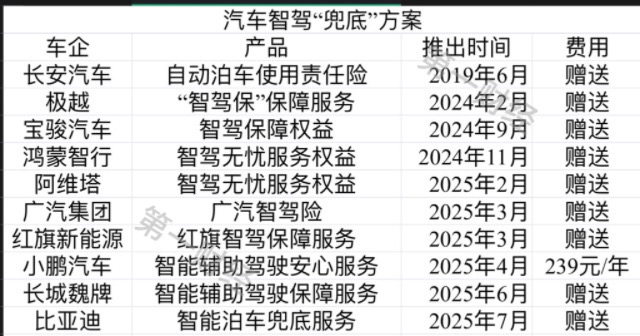 智能辅助驾驶"兜底"方案现状 - 多家新能源车企推出辅助驾驶"兜底"方案,如小鹏汽车、阿维塔、鸿蒙智行等,车主在使用辅助驾驶功能过程中发生事故,若符合相应条件,即可触发赔付,业内称之为"智驾险" [1] - 小鹏汽车的智能辅助驾驶安心服务费用为239元/年,最高补偿100万元,从开启智驾到智驾退出5秒以内的事故可赔付 [2] - 小米汽车计划联合行业头部保险机构推出"小米智驾保障服务",提供最高300万元的保障金额 [2] - 鸿蒙智行、阿维塔等推出的类似权益保障金额可高至数百万元,鸿蒙智行的保障权益购车时随车赠送,价值约4000元 [2] "智驾险"的性质与特点 - "智驾险"并非在监管部门备案的真保险,是车主购买交强险和商业车险后的权益类选项,一般由车企赔付而非保险公司 [1] - 保险产品必须由保险监管部门批准成立的保险公司才能开发经营,业内将此类智能驾驶保障计划称为"智驾险"容易与真正的保险产品混淆 [3] - 交强险和三者险已覆盖基本交通事故风险,"智驾险"增加了消费者的经济负担,且目前只能通过车企购买 [3] - 智能驾驶系统存在软件故障等风险,现有车险可能无法完全覆盖,这类保障计划能填补保障空白 [3] 车企与保险公司的角色 - 在"智驾险"中,赔付由车企负责,用户需先购买与小鹏汽车合作的保险公司的商业险,才能购买小鹏汽车的"智驾险" [4] - 此类保障计划的承保方是车企自身,由车企负责"兜底",尤其是在用户未启用车险或车险赔付额度用尽之后 [4] - 保险公司参与精算建模、测算赔付边界,为车企量身打造权益方案,赔付标准、保障触发条件等核心机制借鉴了保险产品的设计框架 [6] - 保险公司通过早期参与车企辅助驾驶保障权益的设计,获得珍贵的出险样本,为未来推出真正的辅助驾驶保险产品打基础 [6] 行业挑战与发展方向 - 目前的辅助驾驶技术主要处于L2级,离L3级还是"将满未满"状态,"人机共驾"情形下,责任厘定存在挑战 [1] - 保险公司尚未推出智驾保险的原因包括缺少相关经验数据、缺少统一的责任认定标准、智能驾驶数据的真实性与透明度存在问题 [7] - 金融监管总局等四部门提出要统筹保险行业力量,全面系统研究智能驾驶对车险经营的中长期影响 [8] - 未来推出真正意义的智驾险,可能会从比亚迪、特斯拉这类车企系保险公司开始,需加快完善立法,明确不同级别智能驾驶汽车的事故责任划分 [9]