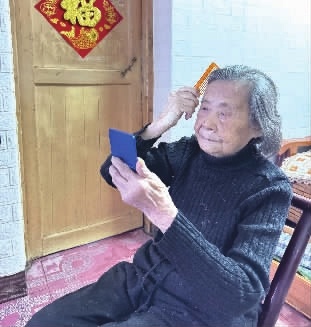 12月26日,长沙市天心区熙台岭社区居民楼里,清晨的阳光透过纱窗,洒在何朝卿奶奶的床头。97岁的 老人正捧着一面磨得发亮的镜子,仔细梳理着花白的头发。"妈妈走到哪都带着镜子,就算不出门,也 把自己收拾得整整齐齐。"64岁的儿子贺振兴站在一旁,眼里满是宠溺。在家人眼中,何朝卿就是"老顽 童"——爱吃零食、爱看电视剧,用乐观心态书写着长寿密码。 "我妈最爱吃桃酥,年轻时就爱吃。"贺振兴笑着说,家里的茶几上永远备着桃酥,都是子女们买的。采 访时,何朝卿坐在沙发上,手里捏着一块桃酥慢慢咀嚼,眼神时不时看向电视里正播放的《西游记》, 孙悟空腾云驾雾的片段看得格外入神。 "妈妈爱看电视剧,最喜欢《西游记》。"贺振兴介绍,母亲不会用智能手机,晚辈玩手机的时候,她就 安安静静地坐在旁边追剧,"有时候还会跟着念叨'孙悟空厉害',那模样特别可爱"。 爱美这件事,老人坚持了一辈子,那面陪伴了25年的小镜子,是她最珍贵的物件。"不管早上起来还是 午休过后,都要拿镜子照一照,把头发梳得服服帖帖。"贺振兴笑着说,母亲从不因年纪大而敷衍生 活,这份对美的追求,让她始终保持着精神焕发的状态。 "我妈能活这么大年纪,就是心态好。"谈及母亲的长 ...