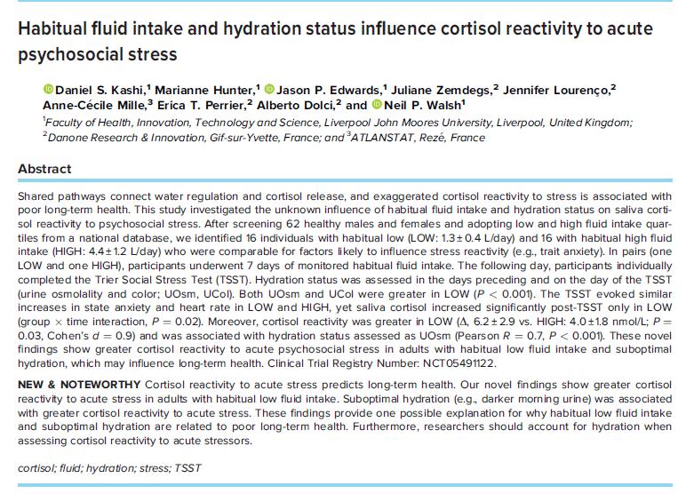 一个新研究发现,我们长期的饮水习惯,正在悄悄地塑造着我们应对压力的生理模式。 那些平时习惯少喝水的人,在面对公开演讲、高难度任务等精神压力时,体内的皮质醇飙升幅度高出55%;甚至在平时,他们的身体就已经处 于一种轻微的"应激待命"状态。 也就是说,除了口渴,缺水还会让身体压力山大。 最简单最便宜的"佛系抗压法",只需要多喝几口水。 研究是怎么做的? 如何确保观察到的压力反应差异,真的是由"喝水多少"引起的,而不是因为参与者本身性格就不同? 研究者们根据英国健康数据库,把人群里饮水最少的 25%定为"低饮水者",饮水最多的 25%定为"高饮水者"。 ▪️ "少水组": 每天喝水少于1.5升的男性和1.3升的女性。 ▪️ "多水组": 每天喝水多于2.9升的男性和2.5升的女性。 这些人先用智能水瓶和液体日记监测了一周的日常水分摄入量,然后回到实验室,去做"特里尔社会压力测试"(Trier Social Stress Test, TSST) ——模拟面试和高难度心算。 这个测试结合了"社会评价"(有人在评判你)和"失控感"(任务很难,你无法掌控局面)两大压力来源。它能非常有效地激活我们身体的应激 系统,让压力激素 ...