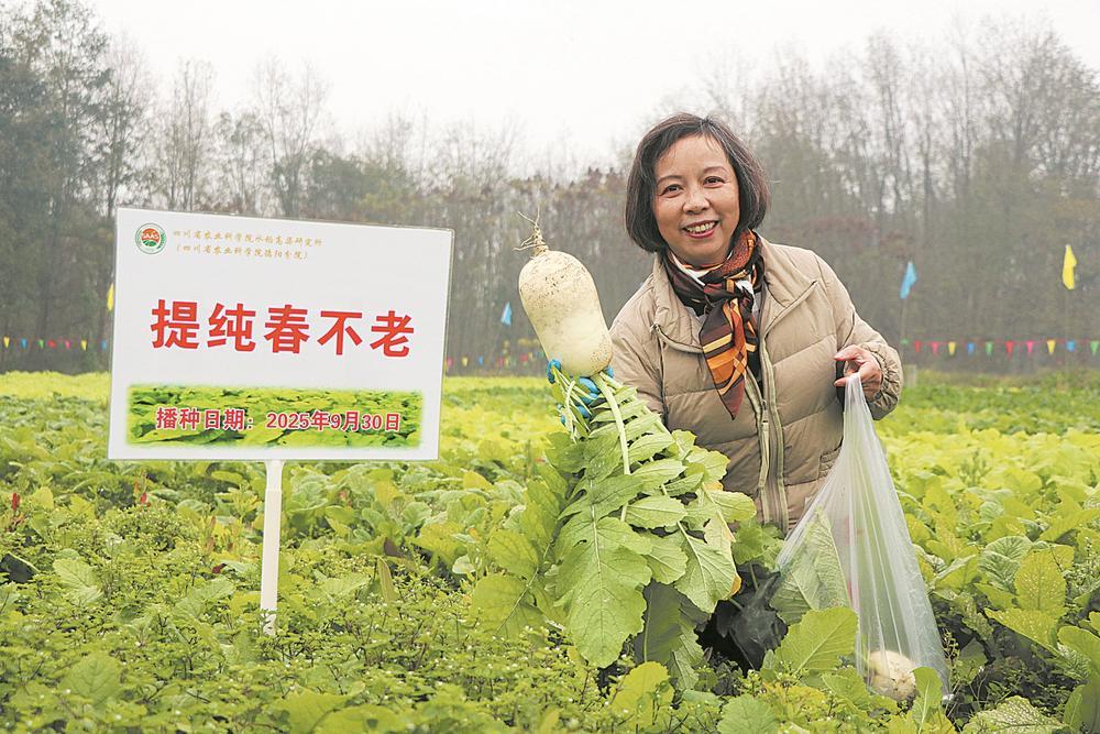 "让孩子亲手触摸土地,知道餐桌上的食物从哪来,这课鲜活!"专程从成都赶来的市民李章强,已是第四次带孩子参与。旁边,村民黎姣捧着 一个沾着湿泥的萝卜笑容满面:"冬至来了,用这萝卜熬汤,甜得很!" 现场,拔萝卜比赛、沙画体验、萝卜主题拍照、套圈等活动轮番登场。最诱人的莫过于中午的"萝卜坝坝宴"——萝卜炖排骨升腾着热气,清炒 萝卜丝散发着清香。"这就是冬天的味道!"游客周女士捧着碗感叹。展销台上,本地制作的萝卜干、泡菜等"短链"食品也引来众人选购。 邓虹 成都日报锦观新闻记者 赵一 文/图 田园"寻根" 乐享丰收 "一二三,拔!"21日清晨,薄雾尚未散尽,郫都区安德街道云桥村的萝卜地里已是一片欢腾景象。在"田园寻'根'·乐在云桥"2025年郫都区云桥 村第七届圆根萝卜丰收体验活动中,近400名市民卷起袖子,在田间上演了一场热闹的"拔萝卜大赛"。孩子们的笑声、家长的鼓励声与刚出土 萝卜的泥土气息,交织成冬日田野里最生动的丰收图景。 转自:成都日报锦观 ...