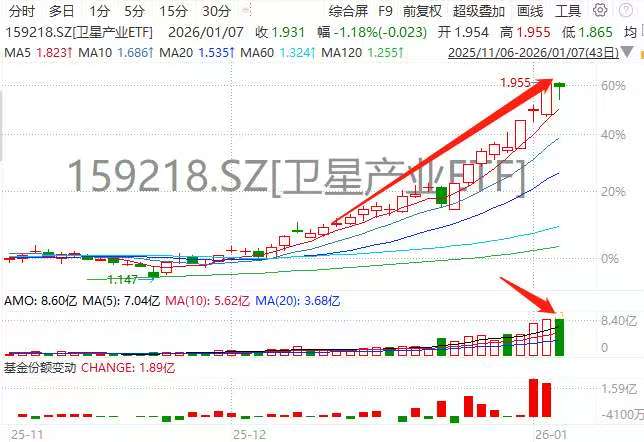 分析称,在政策、资本、技术与战略需求的共同推动下,商业航天产业正迎来系统性发展机遇,卫星产 业ETF(159218)作为覆盖全产业链的高效工具,已成为市场参与这一历史性进程的核心载体。 风险提示:基金有风险,投资需谨慎。 资讯所属栏目还有更多独家策划、专家专栏,免费查阅>> 1月7日,卫星产业板块分歧加大。截至14时11分,卫星产业ETF(159218)跌1.18%,北方导航封死涨停! 交投持续升温,成交额超8.6亿,创历史新高。资金热度不减,据Wind Level2实时行情结合均价预估, 盘中净流入超2.5亿! 国金证券指出,低轨卫星轨道资源因国际电信联盟"先占先得"规则日趋紧张,中国星网、G60等星座规 划近3万颗卫星,发射紧迫性强。成本是制约火箭发射效率的核心因素,可回收技术是国内商业航天降 本的必经之路。2026年有望成为可回收商业火箭元年,国家队与民营企业共振,长征十二号甲、朱雀三 号等将尝试回收,火箭核心价值环节集中于发动机和箭体结构,3D打印技术适配发动机复杂结构,可 实现降本增效,国内企业如蓝箭航天已积极应用。 ...