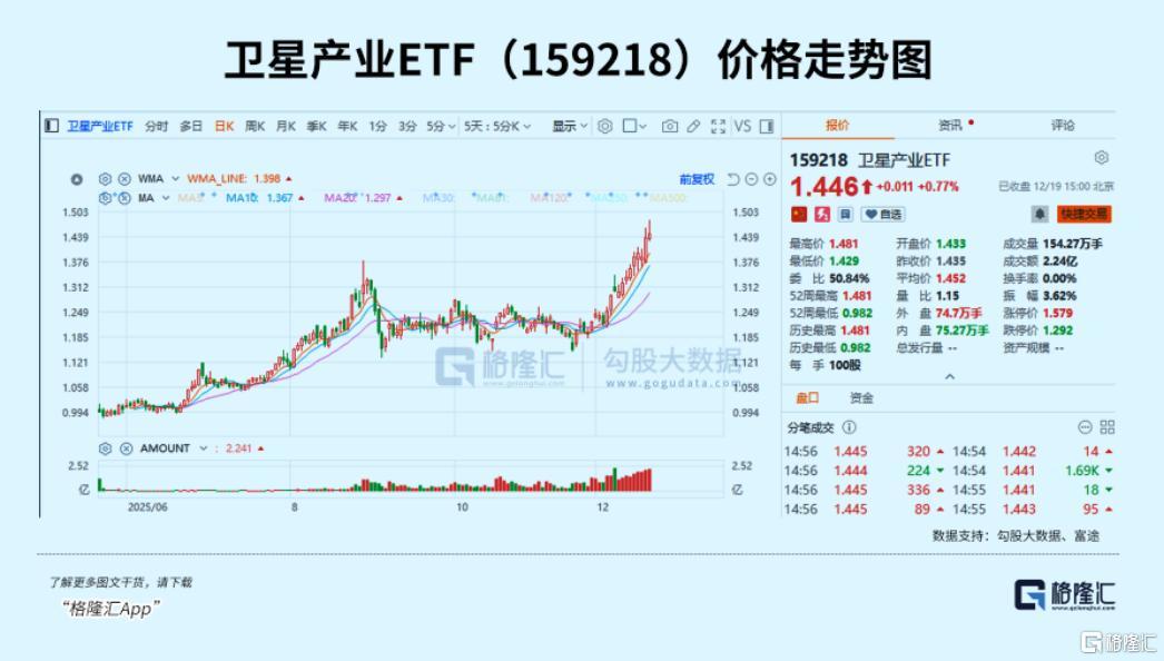 截至收盘,沪指涨0.36%报3890.45点,深证成指涨0.66%,创业板指涨0.49%。板块方面,零售、核电、 电池、光伏、计算机等板块上涨明显。其中,航天装备板块上涨1.51%显著跑赢大盘,卫星产业ETF (159218)上涨0.77%,近20日涨幅达25.52%,走出独立行情,跑赢沪深300指数超22个百分点。 继续明显大涨之后,航天卫星产业链今天继续表现强势。 回顾今年以来,在政策、资本、市场的共振下,商业航天成为全球高度共识要加速发展的超级赛道,国 内外股票市场频频走出持续强劲上涨的大行情。 展望2026年,不少机构认为,商业航天的赛道将迎来更多的投资机遇。 01 爆发元年 最近航天卫星板块之所以持续大涨,离不开重大事件的催化。 据报道,马斯克的SpaceX目前正启动IPO进程,根据最新披露的内部股票交易信息,SpaceX内部股价定 为每股421美元,对应公司整体估值达8000亿美元(约合人民币5.65万亿元)。这一估值较7月时的4000 亿美元翻了近1倍,直接超越OpenAI(5000亿美元)、字节跳动(近5000亿美元)。 机构预测,如果SpaceX的IPO顺利推进,预计募资超300亿美元,目标 ...