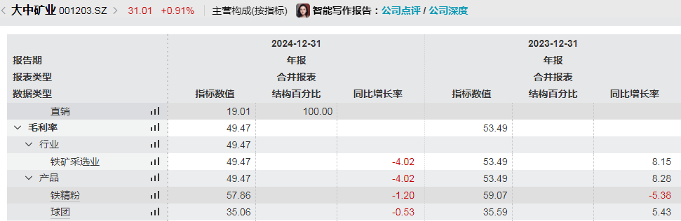 股价与交易表现 - 2024年12月29日盘中,公司股价下跌4.25%,报31.76元/股,总市值486.91亿元,成交额1.84亿元,换手率0.43% [1] - 当日主力资金净流出850.53万元,特大单买卖占比分别为19.41%和26.15%,大单买卖占比分别为15.97%和13.86% [1] - 公司股价今年以来累计上涨275.24%,近5个交易日上涨10.82%,近20日上涨5.51%,近60日大幅上涨168.02% [1] - 今年以来公司已5次登上龙虎榜,最近一次为11月24日,当日龙虎榜净买入8213.62万元,买入总计2.96亿元(占总成交额23.71%),卖出总计2.13亿元(占总成交额17.12%) [1] 公司基本情况 - 公司全称为大中矿业股份有限公司,成立于1999年10月29日,于2021年5月10日上市,注册地址位于内蒙古自治区包头市 [2] - 公司主营业务为铁矿石采选、铁精粉和球团的生产销售以及机制砂石的加工销售 [2] - 主营业务收入构成:铁精粉71.07%,球团20.48%,硫酸4.58%,砂石2.73%,其他0.81%,锌精粉0.32%,锂矿石0.02% [2] - 公司所属申万行业为钢铁-冶钢原料-铁矿石,所属概念板块包括固态电池、锂电池、创投、增持回购、年度强势等 [2] 财务与股东数据 - 2025年1月至9月,公司实现营业收入30.25亿元,同比增长1.60%;归母净利润5.94亿元,同比减少10.67% [2] - 自A股上市后,公司累计派发现金红利14.94亿元,近三年累计派现8.91亿元 [3] - 截至2025年9月30日,公司股东户数为4.54万户,较上期增加1.44%;人均流通股为28402股,较上期减少1.58% [2] - 同期,十大流通股东中,香港中央结算有限公司为第六大流通股东,持股865.90万股,较上期减少35.01万股 [3]