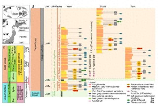 来源:中国新闻网 本项研究成果的相关示意图。(图片来自论文) 通过荧光成像技术,论文作者观察到琥珀样本明显变形,呈现所谓"火焰结构",这种结构的形成是因为 琥珀在沉积时还处于软化状态,在完全变硬之前发生了形变。他们认为,这表明大量琥珀被一次或多次 海啸回流从岸上冲走卷入海中,仅短暂暴露于空气中,随后琥珀沉入海底,被泥沙覆盖得以保存。 本项研究成果的相关示意图。(图片来自论文) 论文作者总结表示,琥珀及其他来自陆地、被运至开放水域的沉积物,对于调查海啸等古代大型破坏性 事件可能具有重要价值。(完) 中新网北京5月16日电 (记者 孙自法)施普林格·自然旗下开放获取学术期刊《科学报告》最新发表一篇化 石研究论文认为,古代深海沉积物中发现的琥珀沉积物可能是迄今已知最古老的海啸记录之一。研究人 员在日本北部北海道岛发现的大型琥珀沉积物,并提出它们可能是被1.16亿-1.14亿年前的一次或多次海 啸从森林卷入了海洋。 本项研究成果相关示意图。(图片来自论文) 该论文介绍,古代海啸的痕迹很难辨认,因为海浪可以重塑海岸线,而它们留下的沉积物也难以和其他 高能事件(如风暴等)导致的结果相区分。不过,琥珀(化石化的树脂)在陆地 ...