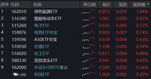 细分方向来看,半导体设备龙头方面,拓荆科技涨超6%,盛美上海涨逾5%;PCB(印制电路板)龙头方面,东山精密涨超6%,深南电路涨逾5%,生益科 技、鹏鼎控股、沪电股份携手涨超4%。 图:电子ETF标的指数涨幅前10大成份股 | 序号 名称 | | 涨跌幅 ▼ 两日图 | 申万一级行业 | 申万二级行业 | 申万三级行业 | 总市值 | 成交额 | | --- | --- | --- | --- | --- | --- | --- | --- | | 1 | 拓荆科技 | 6.20% wit | 电子 | 未曾体 | 未曾体设备 | 978 Z | 12.25亿 | | 2 | 东山精密 | 6.18% von | 电子 | 元件 | 印制电路板 | 1471亿 | 22.14亿 | | 3 | 华工科技 | 5.44% - | 机械设备 | 自动化设备 | ■ 激光设备 | 795亿 | 27.91亿 | | 4 | 奥兰米德 | 5.25% - | 电子 | 半导体 | 半导体设备 | 84417 | 4.76 Z | | ર | 深南电路 | 5.16% v | 电子 | 元件 | 印制电路板 | 149 ...