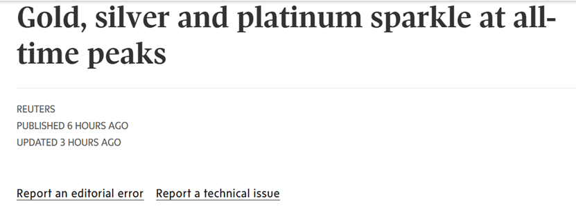 涨超1%,黄金、白银价格都达到了历史高点