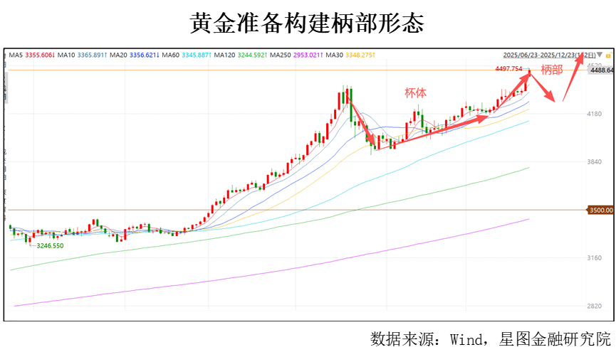 金价近期表现与关键价位 - 国际金价呈现凌厉上攻态势,伦敦现货黄金最高冲至4497美元/盎司,COMEX黄金期货一举突破4500美元/盎司大关,触及4530美元/盎司高位 [1] - 汇丰银行最新预测指出,到2026年,金价有望剑指5000美元/盎司关口 [1] 金价上涨的核心驱动逻辑 - 美联储货币政策预期是当前牵引金价走势的核心变量,降息概率的戏剧性变化直接驱动金价走出“V型”反转 [3] - 美联储于12月11日宣布降息25个基点至3.50%-3.75%,为2025年年内连续第三次会议降息,累计降息幅度达75个基点,明确的宽松路径推动金价大涨 [4] - 据12月最新点阵图显示,2026年及2027年,美联储还将各降息25个基点,基于宽松周期的深化,持续看好黄金未来的上涨空间 [4] 金价技术走势分析 - 伦敦现货黄金在10月20日冲高至4381美元/盎司后进入深度调整,至10月28日最低下探至3886美元/盎司,累计下跌495美元,最大回撤幅度为11.30% [2] - 10月29日,6日RSI指标降至29.59,意味着黄金短期内已正式进入技术性超卖区间,历史上每次6日RSI跌入类似超卖区域往往对应阶段性重要低点 [2] - 进入12月,黄金从12月9日起连续收出3根阳线形成“红三兵”看涨形态,并在美联储降息后强势突破前期压力位,沿5日均线稳健上行 [4] - 当前6日RSI指标已升至90上方,显著突破80的超买界线,显示市场处于极端超买状态,存在获利了结的脆弱性 [5] - 自10月下旬以来构筑的“杯柄”形态中,“杯”体与对前高的突破已完成,但“柄”部回撤尚未充分,预示价格可能迎来一次技术性“假摔”以完成整固 [5] 潜在的市场调整风险 - 彭博商品指数(BCOM)与标普高盛商品指数(S&P GSCI)即将进行年度调整,黄金权重面临大幅下调,明年1月上旬将引发约50亿美元的被动ETF卖压 [5] - 在调仓预期驱动下,部分资金可能提前行动,叠加当前严重的超买状态,黄金市场在短期内可能面临技术性调整,但其长期上升的核心趋势并未改变 [5] 杠杆化投资工具分析 - 黄金期货作为主流杠杆工具,以国内黄金期货合约20%保证金比例为例,投资者仅需支付合约总值20%的资金即可交易全额合约,资金效率放大至现货交易的5倍 [8] - 白银总市值仅为黄金的10%左右,少量资金即可撬动较大行情,驱动黄金上涨的核心逻辑同样对白银构成有效支撑 [9] - 从年内表现看,伦敦现货白银涨幅已达约140%,约为黄金同期涨幅的2倍,直接持有白银现货或配置相关金融产品是一种无需承担杠杆成本却可能获取显著弹性收益的策略 [9]
