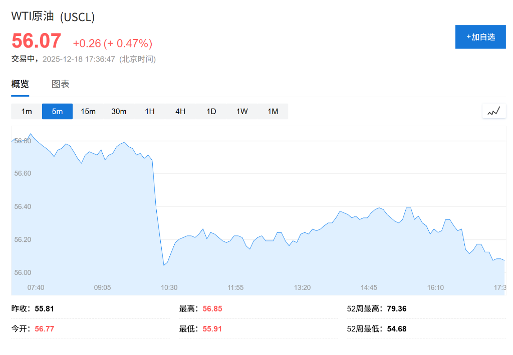 原油日报 | 2025-12-18 委内瑞拉局势恶化,短期原油发货量下降 市场要闻与重要数据 1、 纽约商品交易所2026年1月交货的轻质原油期货价格上涨67美分,收于每桶55.94美元,涨幅为1.21%;2月交货 的伦敦布伦特原油期货价格上涨76美分,收于每桶59.68美元,涨幅为1.29%。SC原油主力合约收涨0.73%,报427 元/桶。(来源:Bloomberg) 2、 当地日期12月17日,委内瑞拉国家石油公司(PDVSA)发布公告通报称,委内瑞拉原油及石油产品出口业务 正在正常开展。公告称,与委内瑞拉国家石油公司相关的油轮仍继续在充分的技术支持和运营保障下航行,合法 行使自由航行权利。自由航行与自由贸易的权利受到国际法的广泛承认和保护。委内瑞拉国家石油公司重申其捍 卫委内瑞拉玻利瓦尔共和国能源主权、履行合法商业承诺及保护海上运营的决心,重申始终遵循宪法、国际海事 法及《联合国宪章》原则行事。(来源:Bloomberg) 3、 据乌克兰总参谋部称,乌克兰无人机袭击了俄罗斯卢克石油公司(LukoilPJSC)位于里海的格雷弗(Grayfer) 油田,并损坏了一个海上天然气平台。声明称,此次袭击发生在1 ...