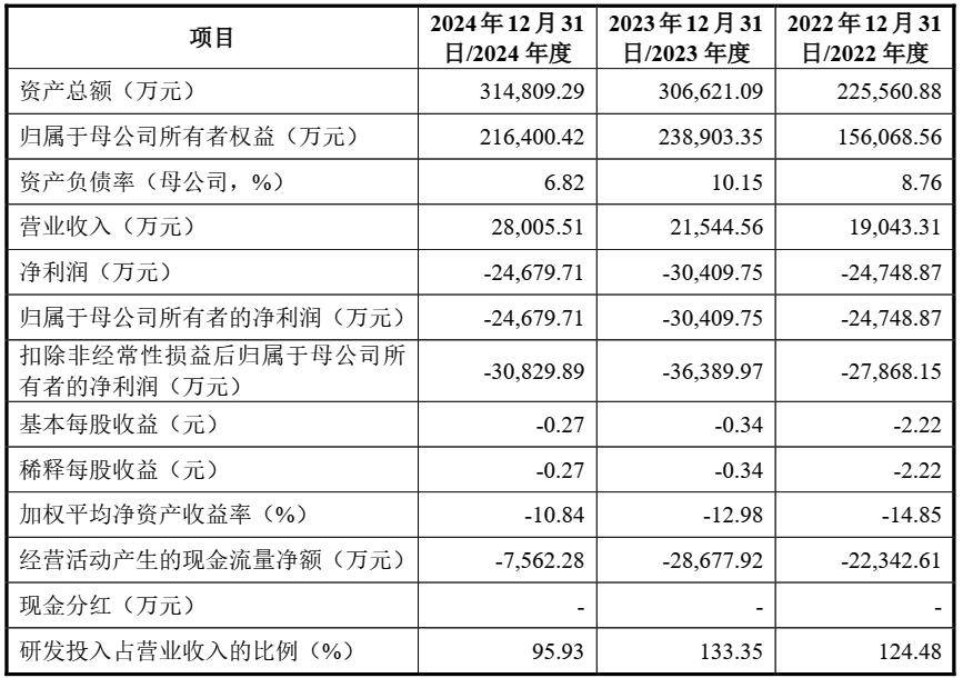 公司概况 - 视涯科技创立于2016年10月,注册资本9亿元,专业从事新一代半导体OLEDoS显示器研发、设计、生产和销售 [1] - 公司主要客户包括字节跳动、雷鸟、联想等 [1] - 2024年12月31日资产总额31.48亿元,较2023年增长2.67% [3] - 2024年归属于母公司所有者权益2.16亿元,较2023年下降9.42% [3] 财务表现 - 报告期内持续亏损:2022-2024年扣非归母净亏损分别为2.79亿元、3.64亿元、3.08亿元,三年累计亏损9.51亿元 [2] - 2024年营业收入2.8亿元,同比增长30% [3] - 资产负债率从2022年8.76%降至2024年6.82% [3] - 2024年经营活动产生的现金流量净额为-7562万元,较2023年-2.87亿元有所改善 [3] 研发投入 - 2022-2024年研发费用分别为2.37亿元、2.87亿元、2.69亿元,三年累计7.93亿元 [3] - 研发费用占营业收入比例分别为124.48%、133.35%、95.93% [3][5] - 研发费用中职工薪酬占比最高,各期均在50%左右 [4] - 2024年研发人员213人,较2023年247人减少13.77% [5] 产品与市场 - 硅基OLED微显示屏2022-2024年产销率分别为89.70%、91.03%、104.95% [6] - 同期产品单价从193.83元/块降至183.41元/块 [6] - 公司解释高研发投入是为建立技术壁垒和先发优势 [5] 资金状况 - 截至2024年底现金及现金等价物余额约2.79亿元 [6] - 已还清全部短期借款,一年内到期长期借款及应付利息5810万元 [6]