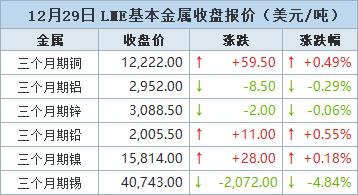 期铜削减涨幅,盘中飙升至近13000美元纪录新高【12月29日LME收盘】